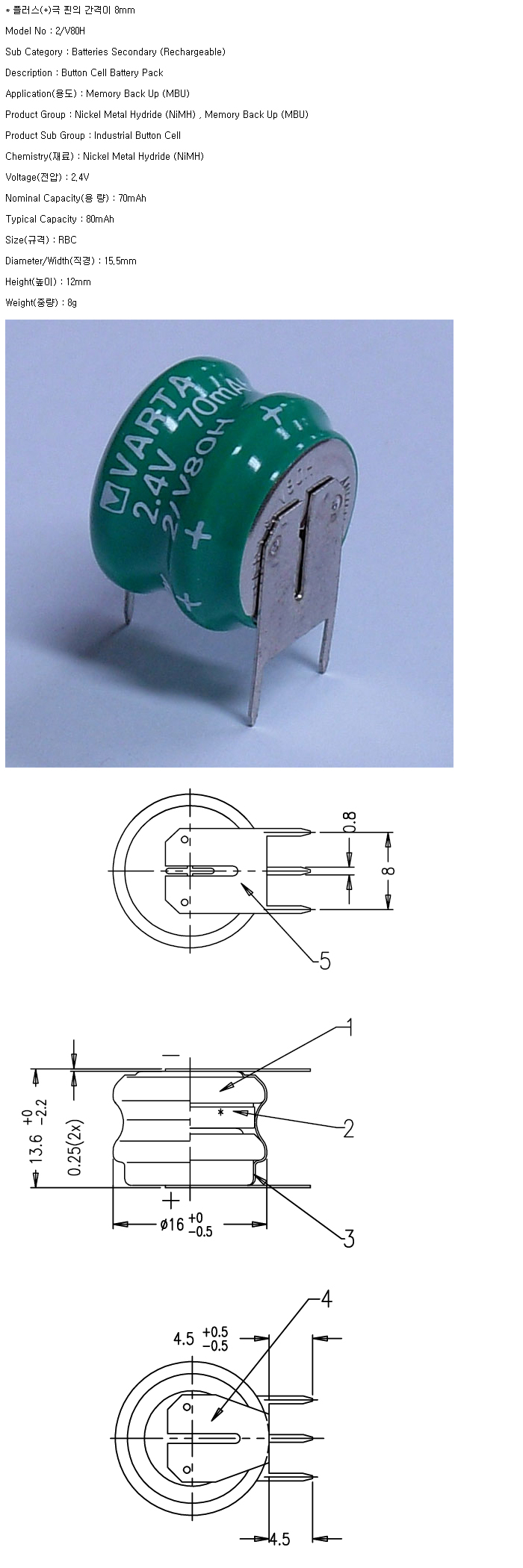 2/V80H-SU3P-P8G14(2.4V 70mAh)