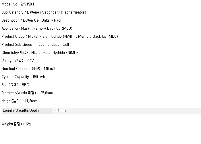 2/V150H-V3P(2.4V 140mAh)OVAL
