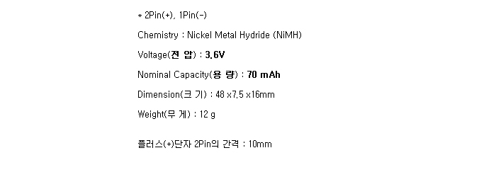 Varta 3/V80H-LF3P-071334(3.6V 70mAh)