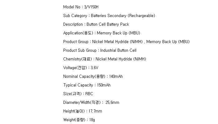 3/V150H-V2P(3.6V 140mAh)