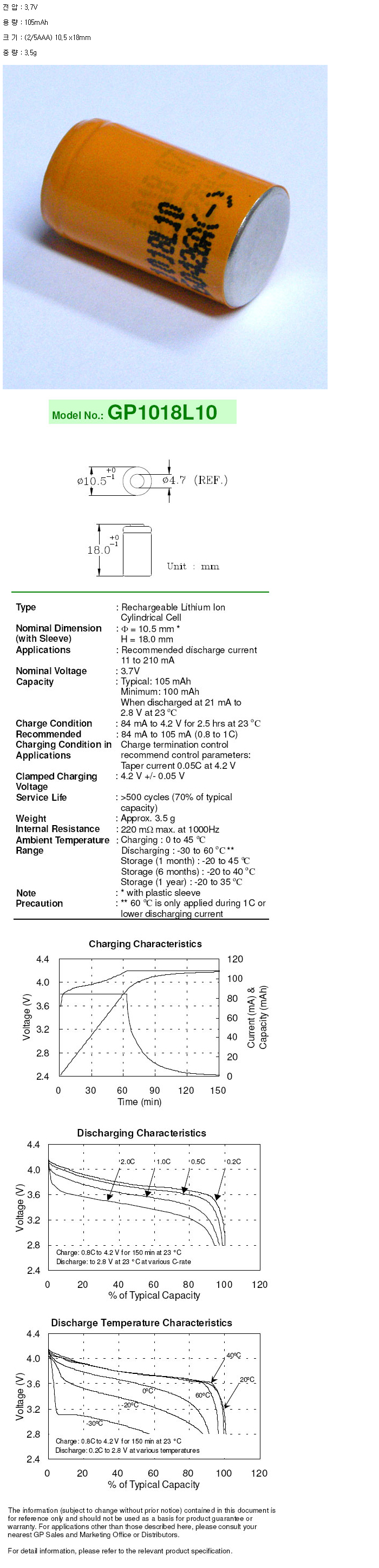 GP1018L10(2/5AAA 3.7V 105mAh):¼öÀÔÁß´Ü,ǰÀý!!