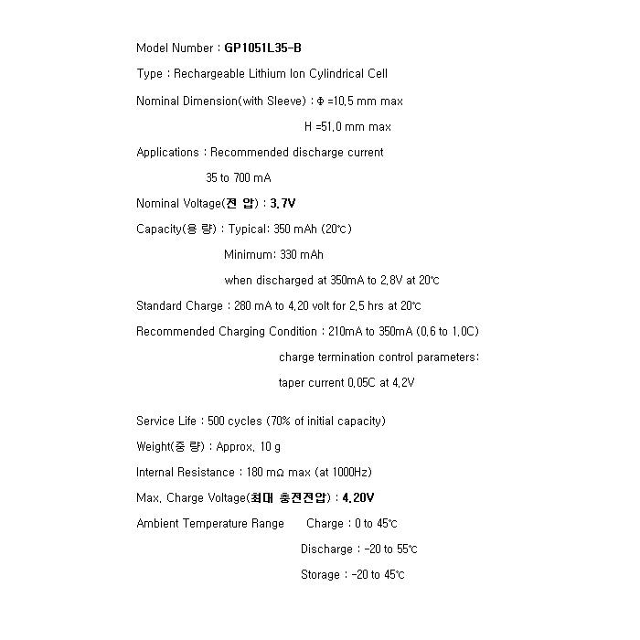 GP1051L35(5/4AAA 3.7V 350mAh):¼öÀÔÁß´Ü,ǰÀý!!