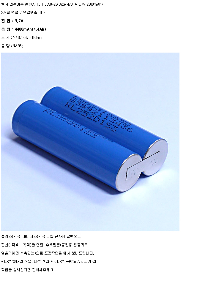 LG2N18650-22-R-1S2P(3.7V 4400mAh)