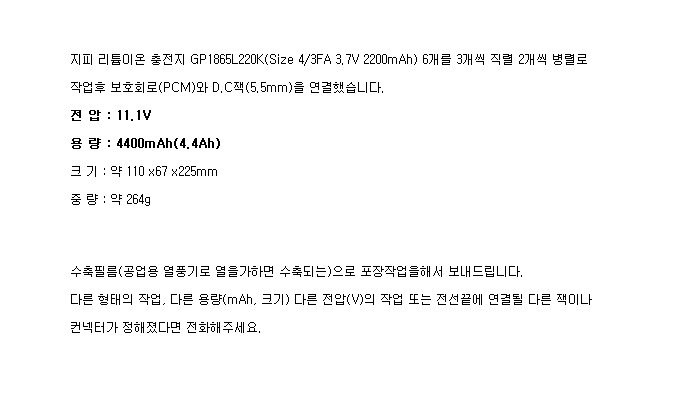GP6N1865L220K-R-3S2P-PCM(11.1V 4400mAh)J5.5FM:¼öÀÔÁß´Ü,ǰÀý!!