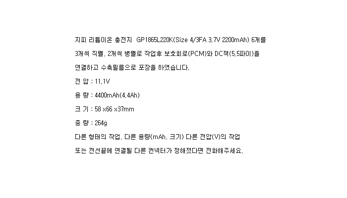 GP6N1865L220K-2R-3S2P-PCM(11.1V 4400mAh)J5.5FM:¼öÀÔÁß´Ü,ǰÀý!!