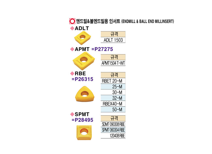 [´ë±¸ÅØ] ¿£µå¹Ð&º¼¿£µå¹Ð¿ë Àμ­Æ®(ENDMILL&BALL END MILLINSERT) RBET 32-M P30 ~ SDMT 120408 RBE ÄÚÆÃ
