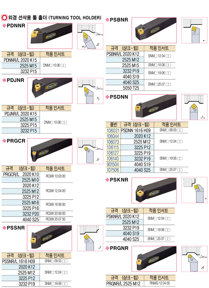 [´ë±¸ÅØ] ¿Ü°æ ¼±»è¿ë Åø Ȧ´õ (TURNING TOOL HOLDER) PSKNR/L 2020 K12 ~ PRGNR/L 2525 M12
