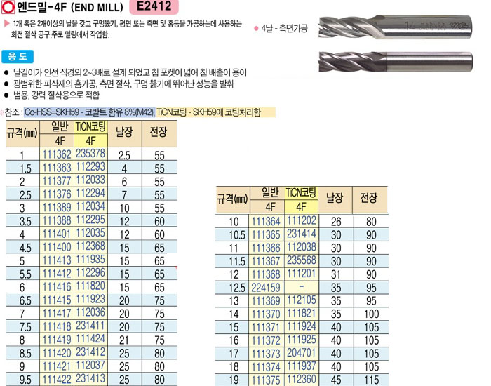 [YG]¿£µå¹Ð-4F(END MILL)ÀϹÝÄÚÆÃ 1mm~5.5mm