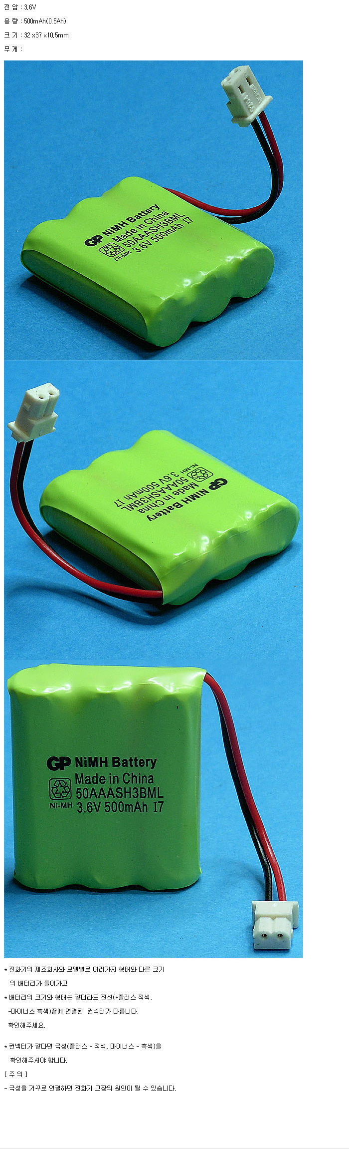 GP50AAASH3BML(3.6V 500mAh)C5264RB:¼öÀÔÁß´Ü,ǰÀý!!