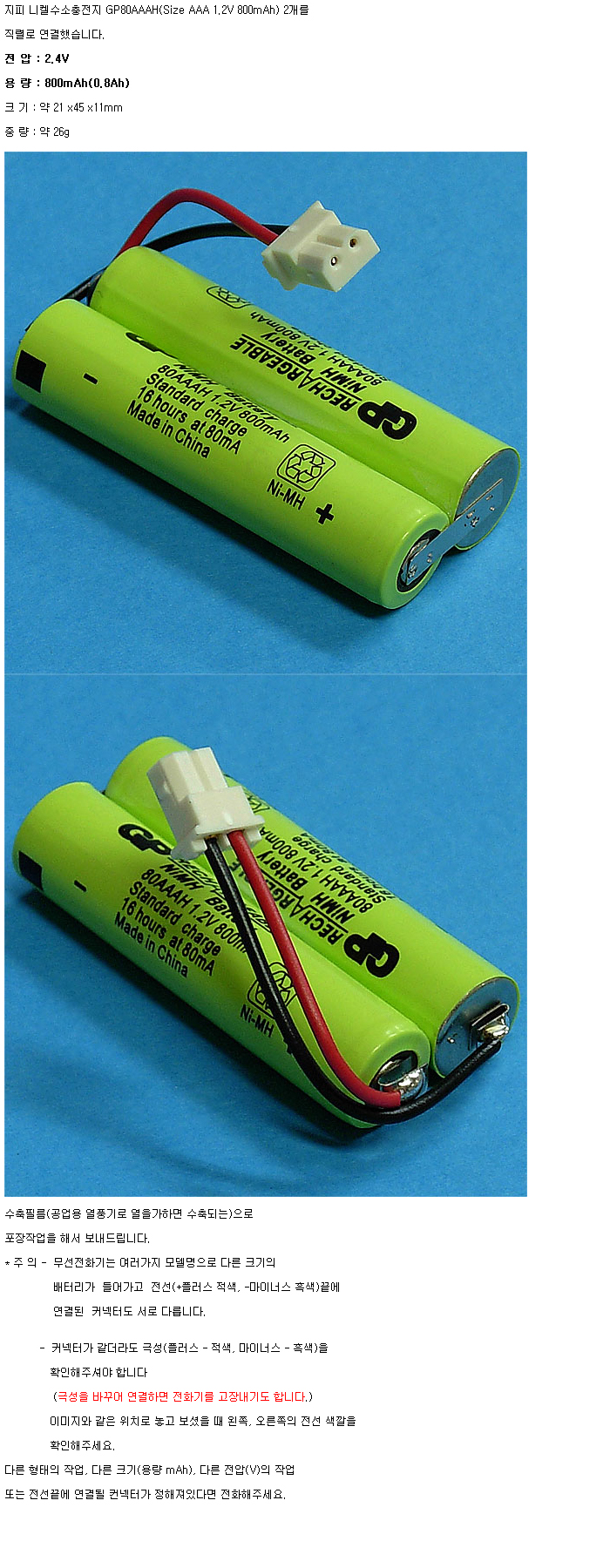 GP2N80AAAH-R(2.4V 800mAh)C5264RR:¼öÀÔÁß´Ü,ǰÀý!!