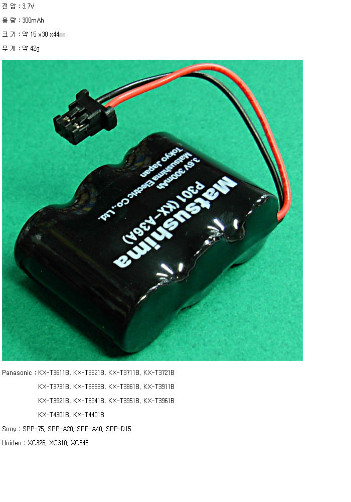 P301(KX-A36A 3.6V 300mAh)