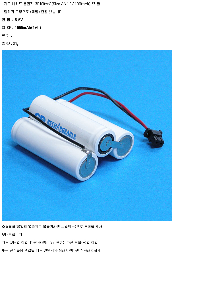 GP3N100AAS-GULL(3.6V 1000mAh)JST:¼öÀÔÁß´Ü,ǰÀý!!