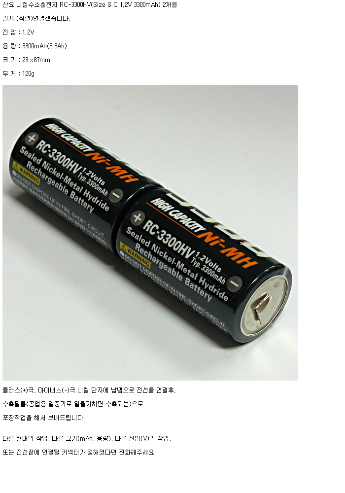 2RC3300HV-L(2.4V 3300mAh)
