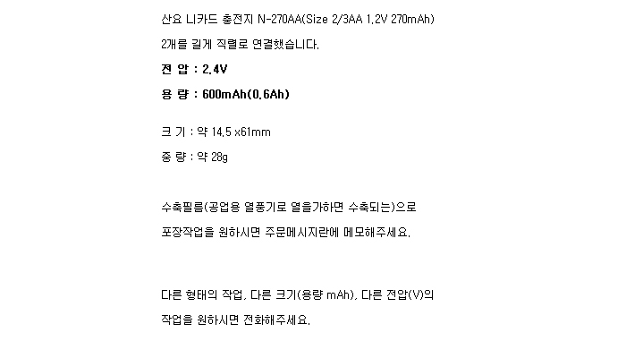 2N270AA-L-VP(2.4V 270mAh)