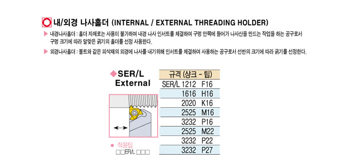 [´ë±¸ÅØ] ³»/¿Ü°æ ³ª»ç Ȧ´õ (INTERNAL/EXTERNAL THREADING HOLDER) SER/L