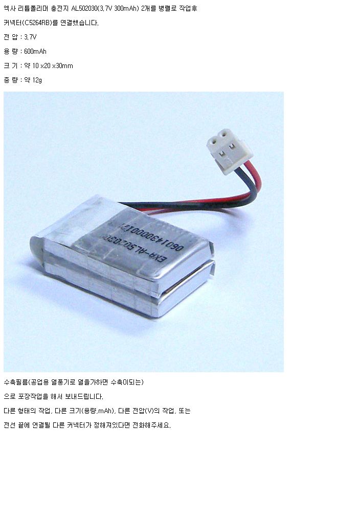AL2N502030-R-1S2P(3.7V 600mAh)C5264RB