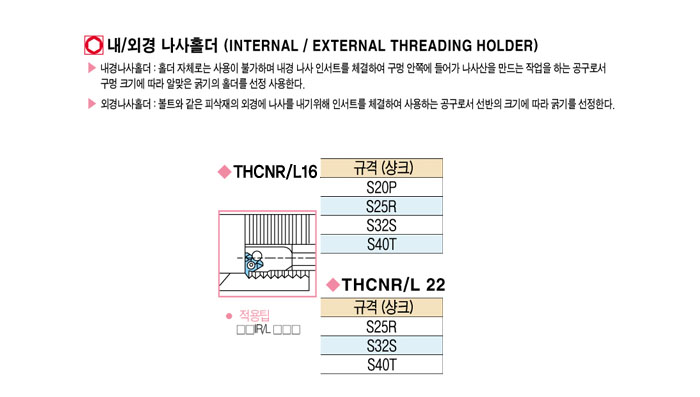 [´ë±¸ÅØ] ³»/¿Ü°æ ³ª»ç Ȧ´õ (INTERNAL/EXTERNAL THREADING HOLDER) THCNR/L16 , THCNR/L22