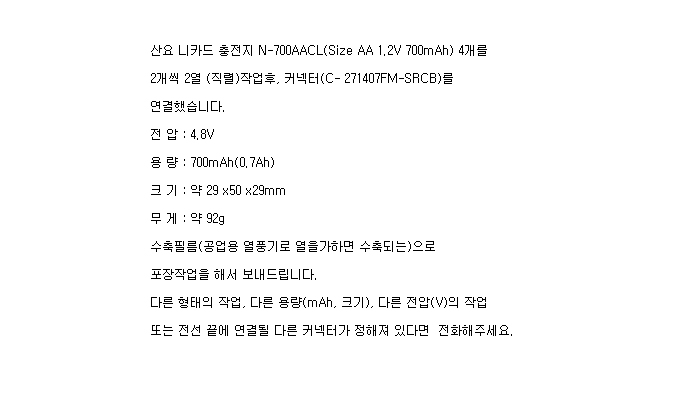 4N700AACL-SQ2R(4.8V 700mAh)C271407FM-SRCB