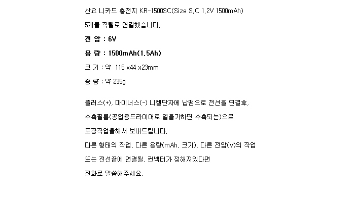 5KR1500SC-R(6V 1500mAh)