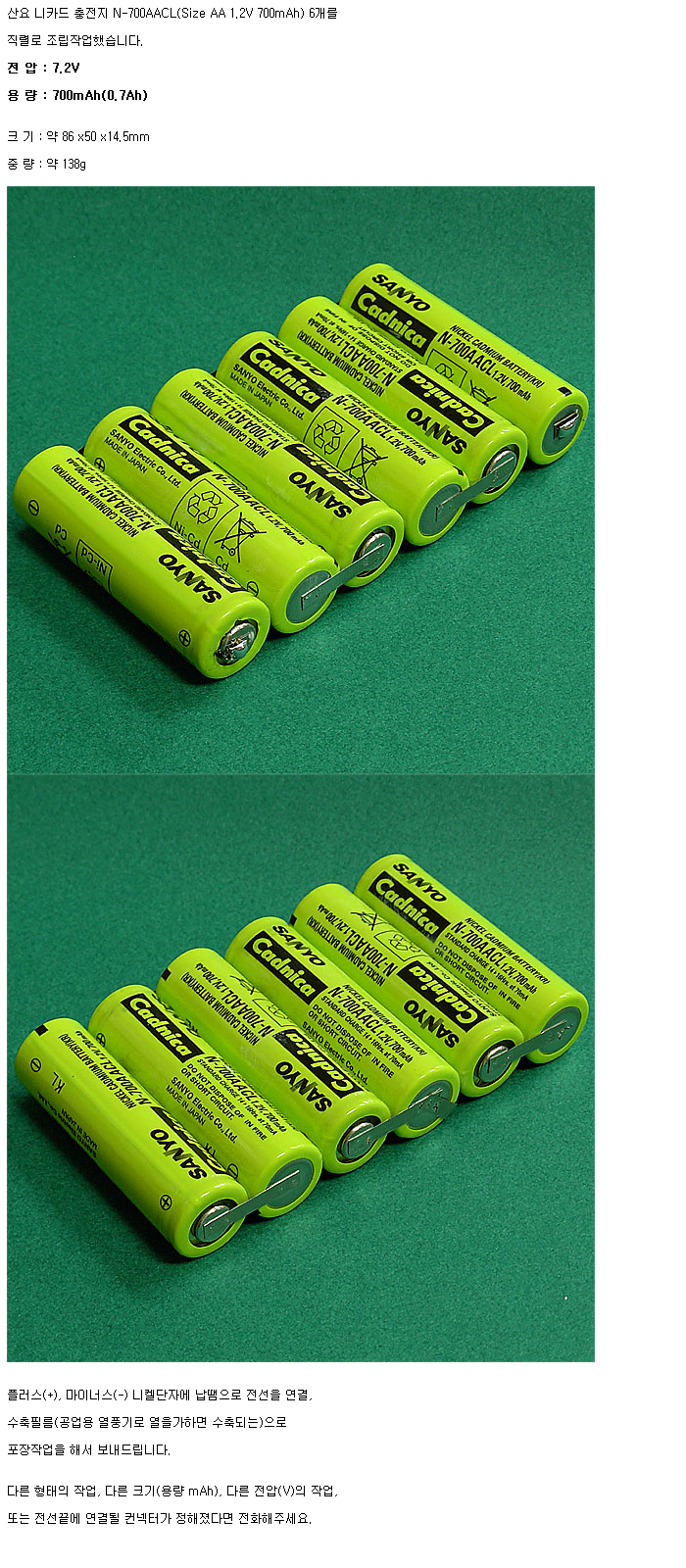 6N700AACL-R(7.2V 700mAh)=>»ê¿ä ºê·£µå Á¦Ç°´ÜÁ¾=>ÇÁ¶û½º»ê »þÇÁÆ® ºê·£µå·Î °ø±Þ°¡´É