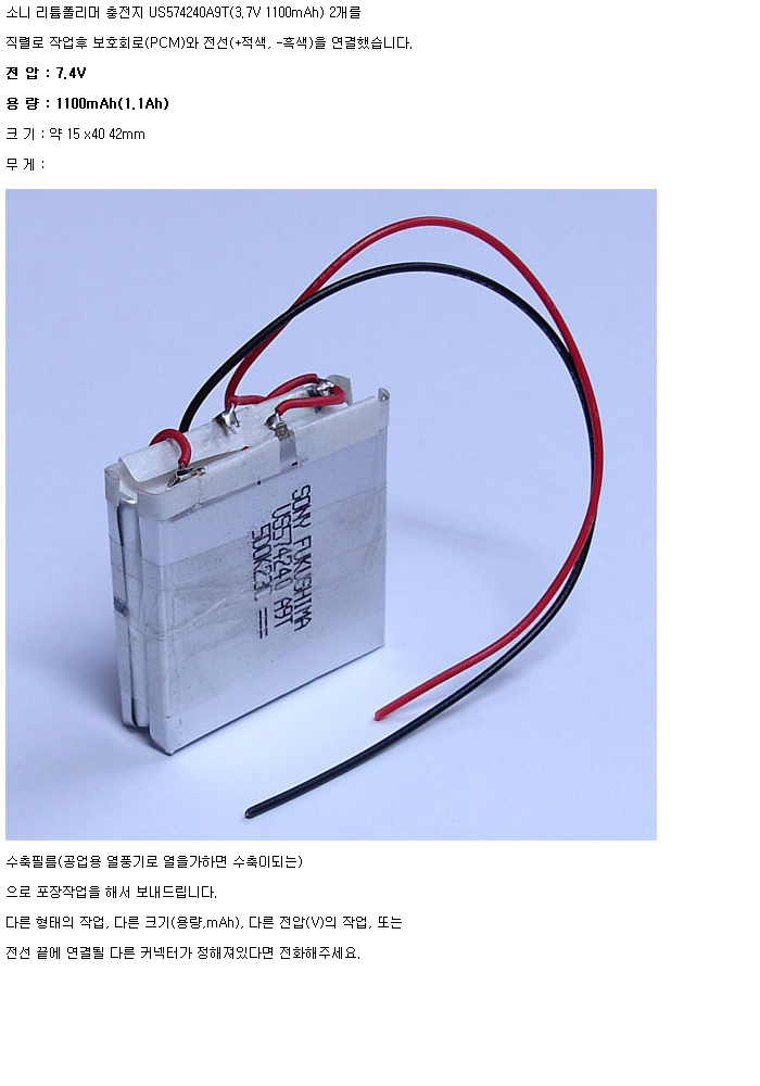 US2N574240A9T-R-PCM(7.4V 1100mAh)