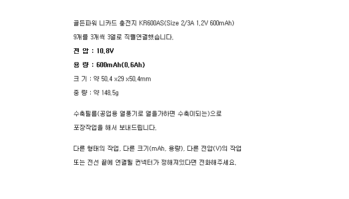 G9KR600AS-3R(10.8V 600mAh)