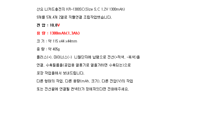 9KR1300SC-2RB-NM(10.8V 1300mAh)Sanyo