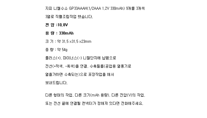 GP9N33AAAH-3R(10.8V 330mAh):¼öÀÔÁß´Ü,ǰÀý!!