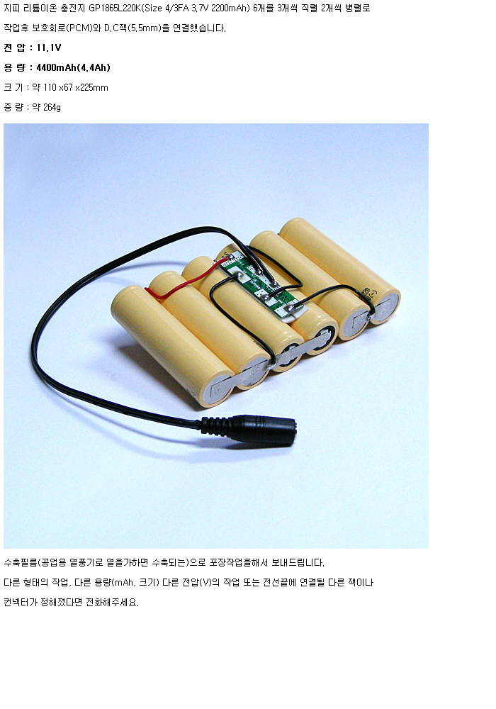 GP6N1865L220K-R-3S2P-PCM(11.1V 4400mAh)J5.5FM:¼öÀÔÁß´Ü,ǰÀý!!