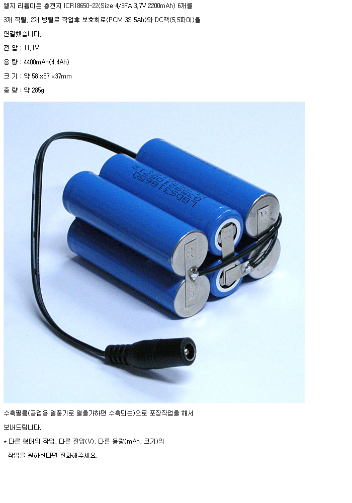 LG6N18650-22-2R-3S2P-PCM3S(11.1V 4400mAh)J5.5FM