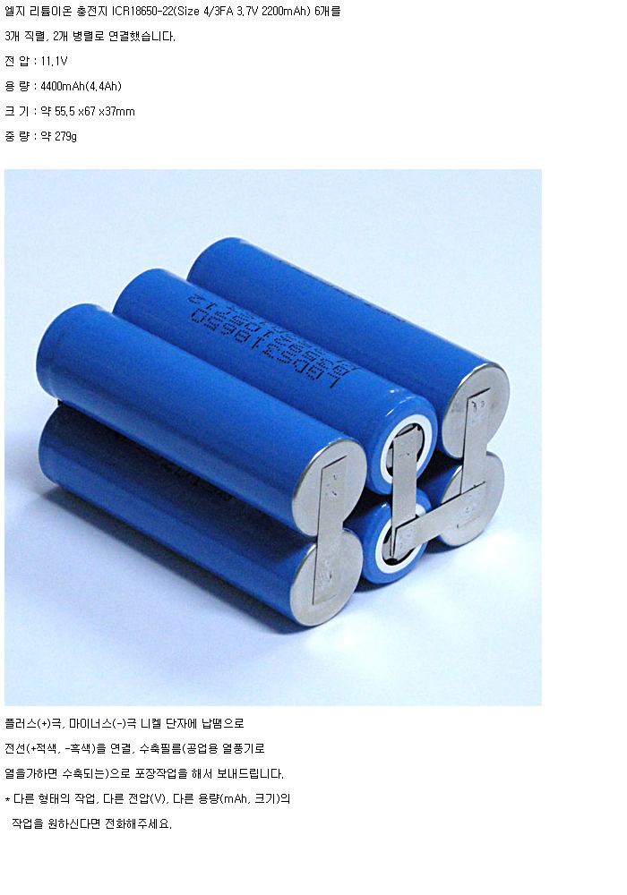 LG6N18650-22-2R-3S2P(11.1V 4400mAh)