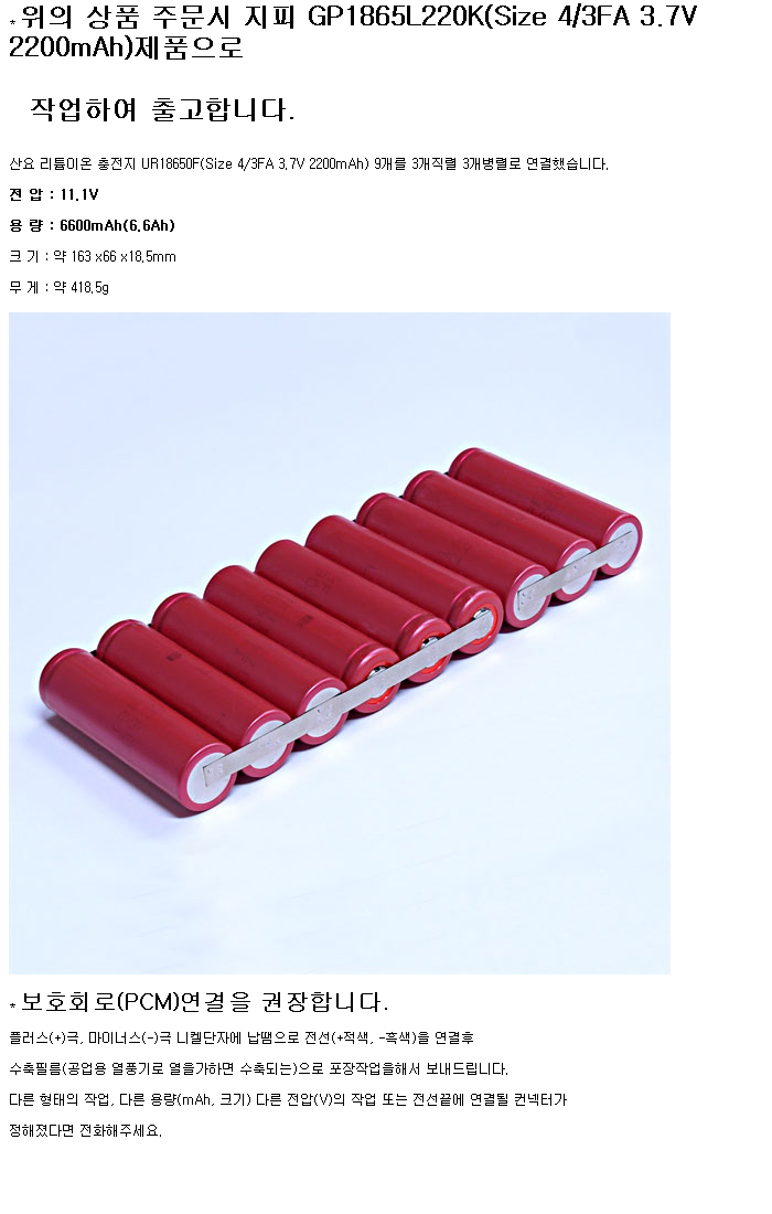 Sanyo UR9N18650F-R-3S3P(11.1V 6600mAh)