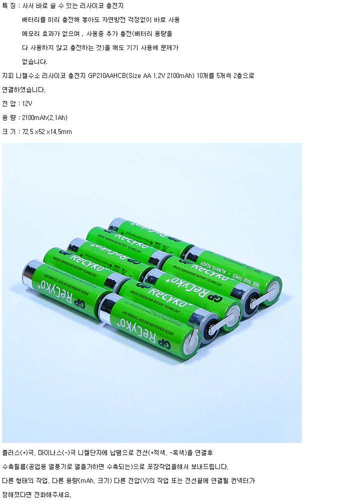 Recyko GP10N210AAHCB-R2F(12V 2100mAh):¼öÀÔÁß´Ü,ǰÀý!!