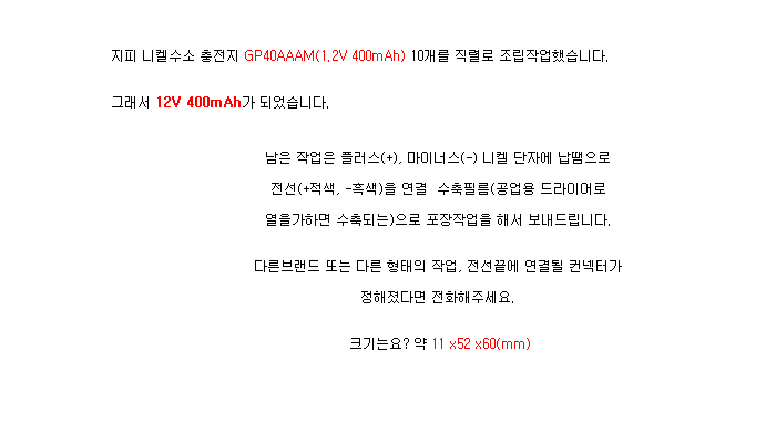 GP10N40AAAM-2S(12V 400mAh):¼öÀÔÁß´Ü,ǰÀý!!