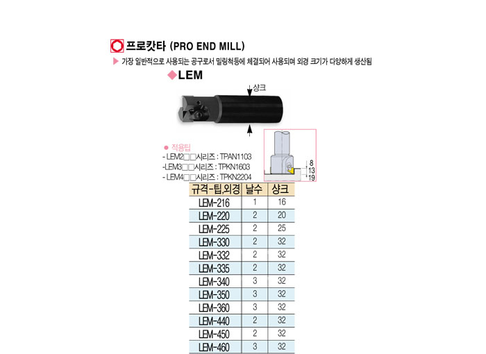 [´ë±¸ÅØ] ÇÁ·ÎıŸ (PRO END MILL) LEM-216 ~ LEM-335