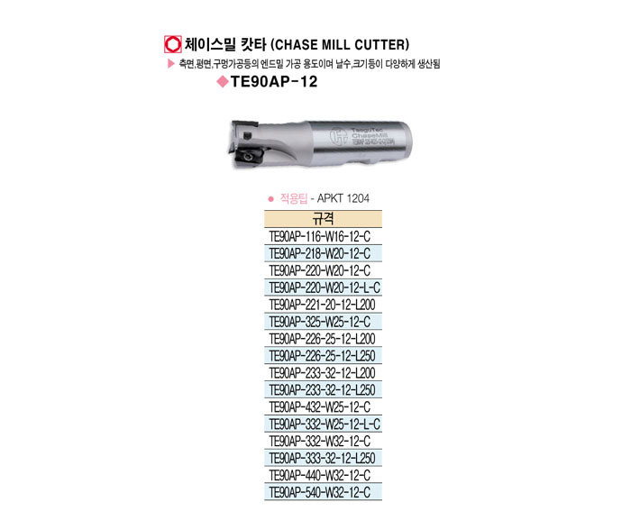 [´ë±¸ÅØ] üÀ̽º¹Ð ıŸ (CHASE MILL CUTTER) TE90AP-12