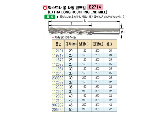 [YG]¿¢½ºÆ®¶ó ·Õ ¶óÇÎ ¿£µå¹Ð(EXTRA LONG ROUGHING END MILL)20mm~32mm
