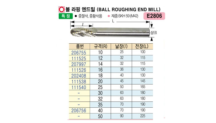 [YG]º¼ ¶óÇÎ ¿£µå¹Ð(BALL ROUGHING END MILL)10~20