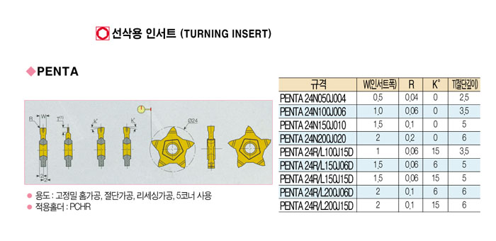 [À̽ºÄ«] ¼±»è¿ë Àμ­Æ® (TURNING INSERT) PENTA