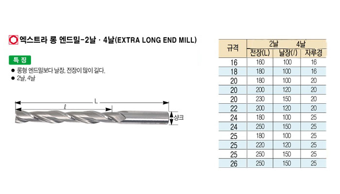 [OSG]¿¢½ºÆ®¶ó ·Õ ¿£µå¹Ð-2³¯¡¤4³¯(EXTRA LONG END MILL)2³¯25~26