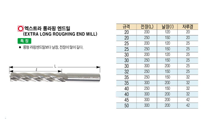 [OSG]¿¢½ºÆ®¶ó ·Õ¶óÇÎ ¿£µå¹Ð(EXTRA LONG ROUGHING END MILL)20~35