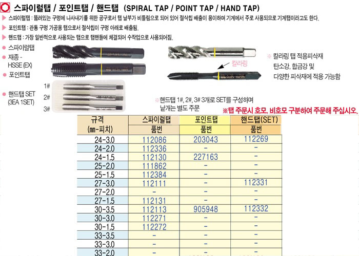 [YG]½ºÆÄÀÌ·²ÅÇ/Æ÷ÀÎÆ®ÅÇ/ÇÚµåÅÇ(SPIRAL TAP/POINT TAP/HAND TAP)½ºÆÄÀÌ·²ÅÇ 24-3.0~30-3.0