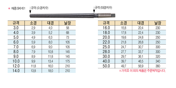 [µð¿ÍÀ̾¾]ÇÚµå ÅׯÛÇÉ ¸®¸Ó(HAND TAPER REAMER) 3.0 ~ 14.0