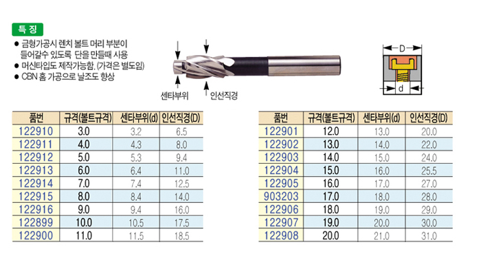 [»ó½Å]¹Ù¿îÅÍ º¸¾î(COUNTER BORE) 3 ~ 12