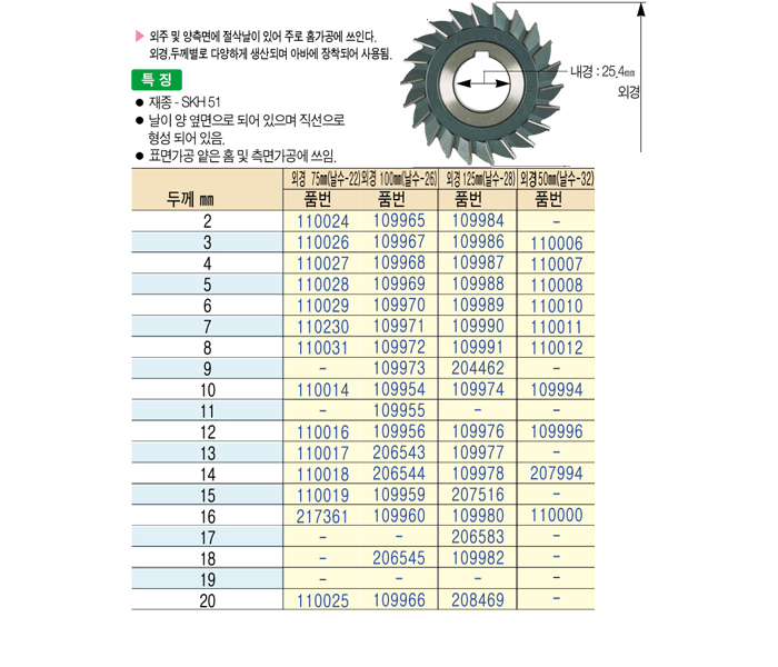 [ÅÂÈ­]»çÀ̵å ıŸ(SIDE MILLING CUTTER) (¿Ü°æ 125 mm)2 mm ~ 11 mm