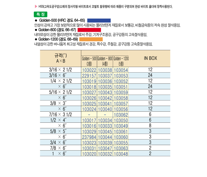 [½ã·º½º]¿Ï¼º¹ÙÀÌÆ®(SQUARE BITE)(Golden - 800) 3/16 X 2 1/2 ~ 1/2 X 4