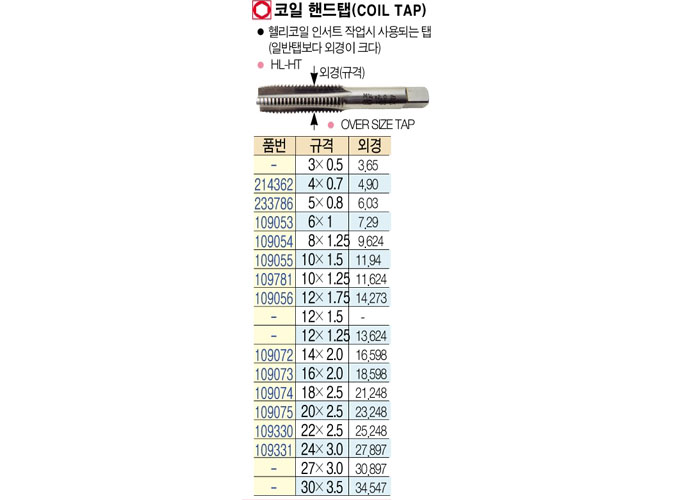 [OSG]ÄÚÀÏ ÇÚµåÅÇ(COIL TAP)14x2.0~30x3.5
