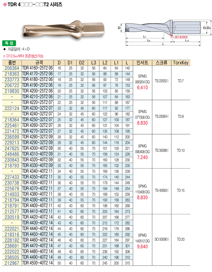 [´ë±¸ÅØ]T - µå¸±(T-DRILL) TDR4460-40T2-14 ~ TDR4500-40T2-14