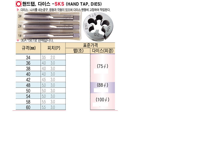 [STC]ÇÚµåÅÇ,´ÙÀ̽º-SKS(HAND TAP,DIES)´ÙÀ̽º(¿Ü°æ) 75¥õ 34mm~42mm