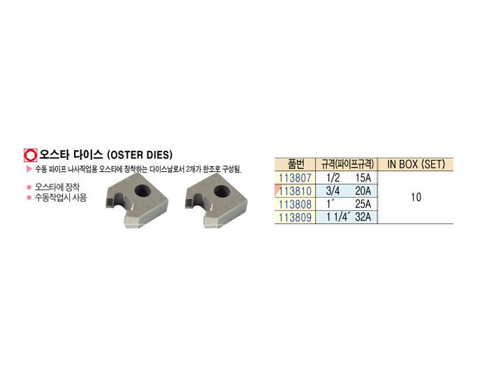 [SUNPOWER]¿À½ºÅ¸ ´ÙÀ̽º(OSTER DIES)1/2 15A~1 1/4" 32A